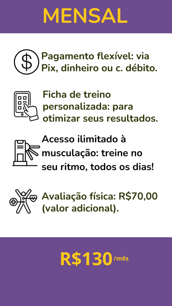 - Acesso ilimitado na musculação.